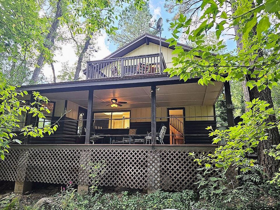 Rare opportunity to own one of the larger lots in Christopher Creek! Welcome to paradise! This beautiful and well kept home is completely surrounded by mature trees and lush green landscaping. This 2 bedroom 1.75 bath home offers a huge loft and craft/sewing room. The home has extra insulation to keep it warm in the winters and cool in the summers. There are breathtaking forest views from every window and three patios. Take in the tranquility and panoramic view from your over sized covered patio or enjoy a nice cup of coffee on the quaint balcony off the great room. If you want even better views of the property, enjoy the upstairs deck attached to the loft! The soaring vaulted ceiling and beautiful natural stone fireplace make the great room perfect for entertaining. Christopher Creek close to many hiking trails, creeks, and even lakes for fishing. If you're looking for a place to unwind and relax, this is it! Even the local elk, squirrels, and blue jays agree! You'll often see them on the property enjoying the shade and quiet serenity that this home offers. There is plenty of storage throughout the inside of the home and a spacious workshop for any outdoor projects. There is ample parking on site so bring all your toys!