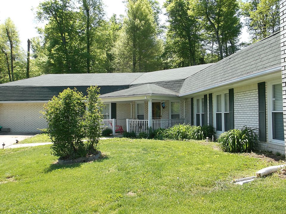1400 SQ.FT. BERM STYLE HOME, 1.5 CAR DETACHED GARAGE, 3 ACRES, 36 YEARS OLD, 2-3 BEDROOMS, 2 BATHS, LIVING ROOM, DEN, KITCHEN, DINING ROOM, UTILITY ROOM, 6 CLOSETS, SCREENED IN BACK DECK, GAS LOG FIREPLACE, HEAT PUMP, CENTRAL AIR, BREAKERS, INSULATED WINDOWS, SATELLITE, SHADES OR BLINDS, STOVE, REFRIGERATOR, CEILING FANS, STORAGE BUILDING, WRECC, CITY WATER & SEWER.