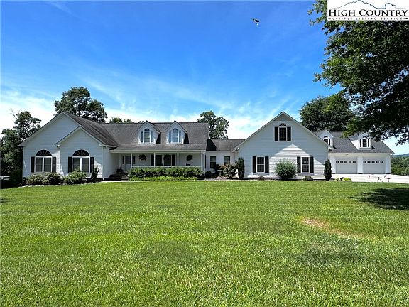 This stunning home nestled at the base of the Blue Ridge Mountains offers breathtaking mountain views and a serene setting near Stone Mountain State Park.This large home features gorgeous oak hardwood floors, granite countertops, and custom cherry cabinets.You'll enjoy the enclosed sunroom with brick paver flooring and a new mini-split heating and cooling unit.Additional amenities include a detached custom-built 3 car garage, generator hookup, natural gas, and a tankless water heater.The spacious interior boasts 9ft ceilings, walk-in closets in each bedroom, and a versatile bonus room upstairs. Custom 1/2 round windows add to the charm of the front bedrooms, while the main bedroom features a bath with a tiled walk-in shower.