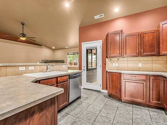This spacious 4 bedroom, 2 bath, 3 car garage home is waiting for new owners. Beautiful tile and hardwood floors and freshly cleaned carpets. This home offers a split bedroom floor plan and nice sized bedrooms. Brand new hot water heater, expansion tank. Air conditioner recently serviced. Stucco exterior. Covered and open patio with large storage shed. Leased Solar. Get inside today.