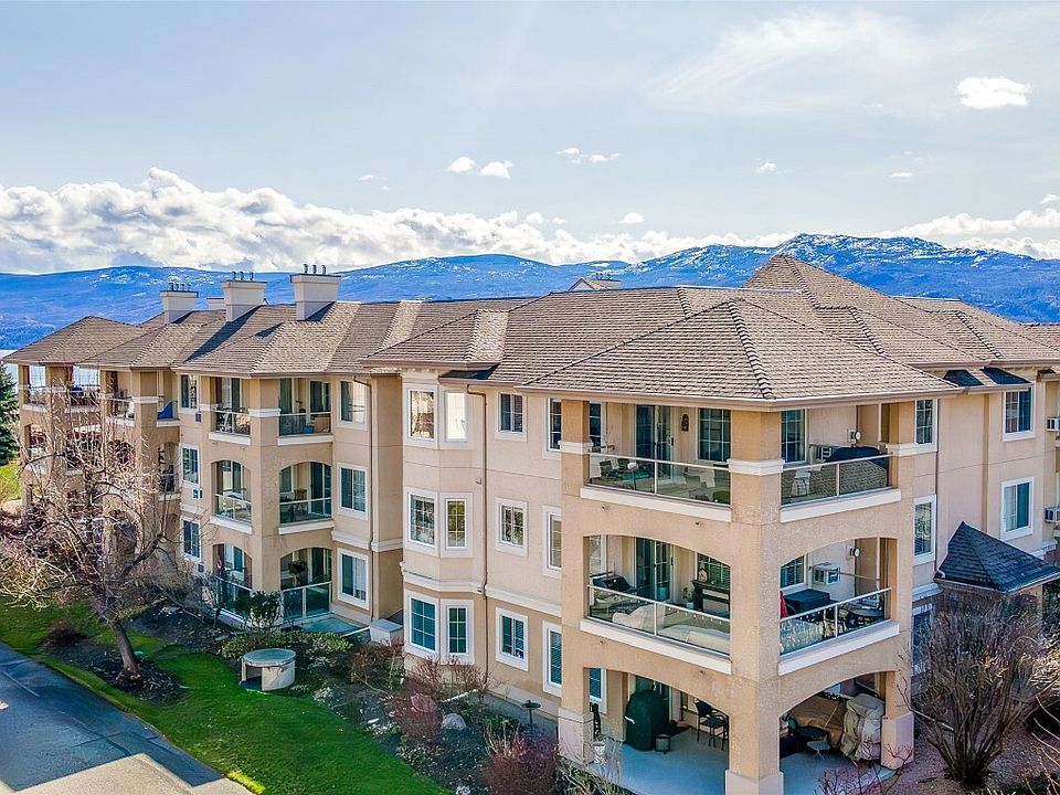 Not your average condo at the Monticello! This top-floor corner unit in West Kelowna's sought-after 55+ community offers a comfortable 1,318 sq ft. split floorplan, with a huge private deck, 2 bedrooms PLUS a den, and 2 full bathrooms. The spacious and bright primary includes a 4 piece ensuite. Guests will enjoy their separate suite at the other end of the unit. A central den offers extra space for an office, additional guest space or a tv lounge. A large walk in laundry/ storage room is handy within the unit. You'll appreciate the recent updates – brand new stainless steel appliances, newer washer/dryer, fresh paint, lighting, new thermal shade blinds, and updated plumbing throughout – making this home truly move-in ready. The open living area flows easily onto the deck, perfect for relaxing or entertaining. The oversized deck is an extension of your living space. Top floor privacy and quiet, with mountain views and even a sneak peek of the lake! The Monticello is a well-maintained community with great amenities: a clubhouse, secure parking, FREE RV parking, a workshop, and guest suites. Plus, your strata fees include the heat of the natural gas fireplace. Tucked away near vineyards, and a regional park, yet just a short walk to groceries, cafes, and other essentials, this location offers a relaxed lifestyle with easy access to everything you need. It's a great opportunity to enjoy comfortable, convenient 55+ living. One smaller pet welcome!