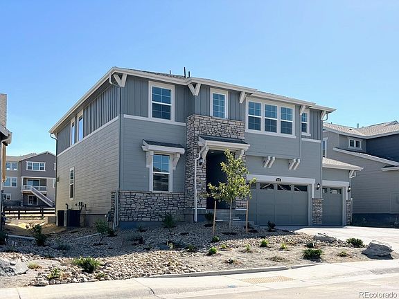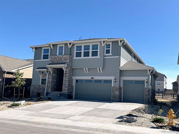 This beautiful 5 bedroom 4 bathroom home has a walk-out basement and is situated on a corner homesite! The main level has lots of natural light, a versatile bedroom, full guest bathroom, EVP flooring, gorgeous kitchen with a large eat in kitchen island, quartz countertop and a 2-story great room. Open railing leading to the upstairs which has your owner's suite with spa style en-suite bathroom, laundry room, 3 additional guest bedrooms, Jack n Jill full bathroom and a guest full bathroom. The walk-out basement is unfinished waiting for your personalization. Store all of your toys in the 4-Car Garage!! Macanta is an amenity rich community with a clubhouse, pool, miles of walking trails and some of the best topography Colorado has to offer! The location puts homeowners close to Castlewood Canyon State Park for great outdoor recreation, while Denver is a short drive away for a plethora of shopping and restaurants. Estimated Completion June 2024.**Ask about special financing on this home**