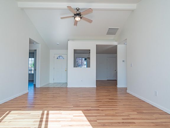 Ready to move into and call ''Home''. Great split floor plan. Tile entry to large living room with vaulted ceiling. New water resistant laminate flooring throughout. Kitchen has new stainless steel dishwasher and glass top range/oven, lots of cabinetry and counter space plus built in desk area. Spacious primary bedroom. Fresh interior and exterior paint. New vanities in both bathrooms. The .17 acre lot offers a large back yard with a patio.