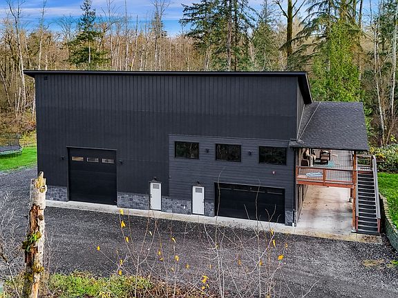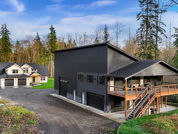 This 3,221 SF custom home, built in 2023 w/ detached 1,275 sq. ft. ADU & shop, located in a very secluded nature retreat at the end of a long driveway, is just 5 minutes from I-5 & 20 minutes to Bellingham. Enjoy main-level living w/ an open-concept layout for living, kitchen, & dining areas, while the primary suite features a custom Montana stone waterfall shower & private patio access, is set apart for privacy. The home includes two offices—one on each level. The upstairs bonus room offers versatile use options, while the chef's kitchen boasts custom, soft-close cabinets, large island w/ quartz countertops, a walk-in pantry, & coffee/wet bar w/ pot fillers. Highlights include solar panels, EV charging & pond with abundant wildlife.