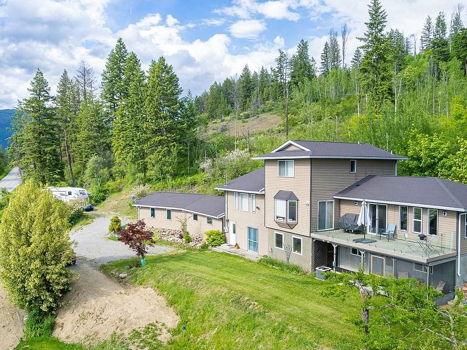 This property checks all the boxes! Whether you are a family, a family with a parent, or a couple wanting extra income this property fits all! This newly listed home boasts a panoramic view of our ever changing Creston Valley. If you have been searching for a unique property that allows you choices, we have found what you have been looking for! This home sits on 1.53 acres of recently FireSmart compliant landscaping with a 3,249 sq ft home divided into 2 separate living areas. The larger living area consists of 3 levels of living space and has 4 bedrooms and 2.5 bathrooms as well as a deck off the kitchen and primary bedroom, a double car garage and a 20' x 25' workshop plus storage and closed in woodshed. The other side is a large 1 bedroom and 1.5 bathrooms suite with a glassed in duradeck sundeck off the living room and kitchen and a lovely screened in lower patio. On the north side of the property there is a fully equipped parking pad with large deck for an RV or mobile home. Increase your revenue! Rent them in accordance with the zoning regulations or live in them, it's up to you. If you are looking for 1 large home instead this can easily be transformed back, there is a designated area in the separating wall to open it back up into just one dwelling. All of this is nestled on a view acreage which is a nice mix of forest and open areas ready for your gardening adventures. Call your Realtor, come take a look and imagine yourself living here! (id:41440)