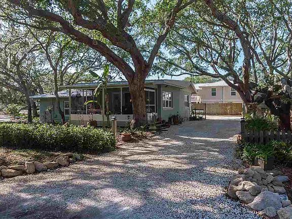 Adorable upgraded and remodeled cottage style home tucked among the mature oaks just steps to Vilano beach or intracoastal waterway awaits you as primary residence or short term rental . Newer metal roof, Ac unit, appliances, master suite, doors, updated electric panel, alarm system, ceiling fans with recently added 1.5 car garage make this charming home move in ready. Laminate wood floors in living area, large screened patio for enjoying the ocean breeze,