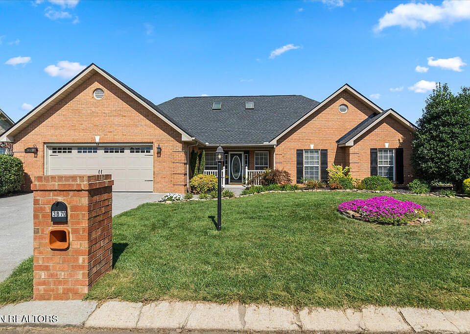 This fully updated all brick 3 3-bedroom, 2-bathroom home offers the ease of main-level living in a peaceful neighborhood. The open-concept living area has vaulted ceilings & skylights that bring warmth and light into the living room. New custom built-ins surround the fireplace. The kitchen has updated appliances, ample white cabinetry and granite counter tops with bar seating. A separate dining room and den, making it perfect for gatherings/entertaining. The primary bedroom suite is a true retreat, complete with walk-in closet, ensuite bath and separate tiled shower. Two additional bedrooms, second bath and office offer excellent additional space. The professionally landscaped yard is fully sprinklered. Move-In Ready
