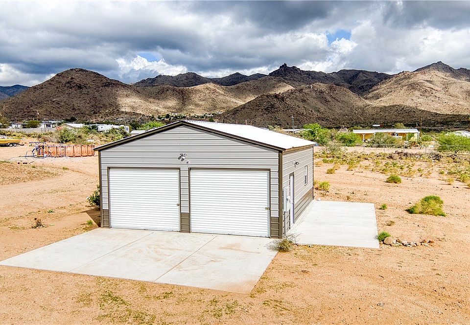 Mountain Views!! Live rural yet not far from town. Over 1 acre lot with : *Fully foam insulated 24x30 RV garage *Large front concrete pad *30 foot side RV pad *50 amp breaker inside *50 amp plug for your RV outside *RV hookups including - Water (hose bibs) and dump *1,250 gallon septic tank has already been installed that would comply with a future 4 bedroom home Close to pavement, only .06 miles from the end of pavement and very easy access from HWY 68. Perfect spot to park your RV year round, or just for the season. Safe space to store when not in use. Or, build your dream home or install manufactured on this beautiful lot. Mountain views, and just a short drive to Kingman, Bullhead, Laughlin Casinos and the Colorado River!