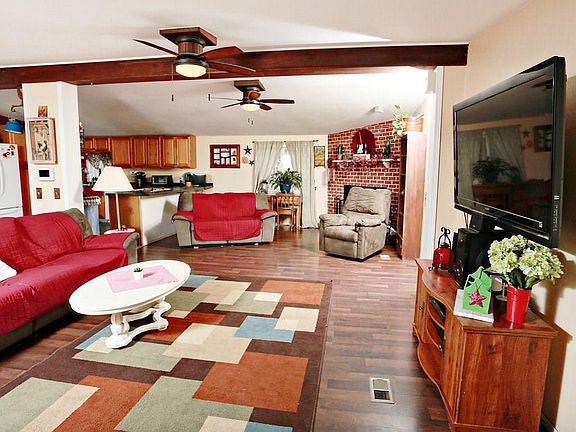 Open kitchen, dining and living room. Spacious bedrooms including a master with walk in closet and bath. Large utility room with cupboards and closets. Relax on your front covered deck or your back deck and patio. 30x48 insulated shop plumbed for a bathroom. Dirt bike track and room for your animals.