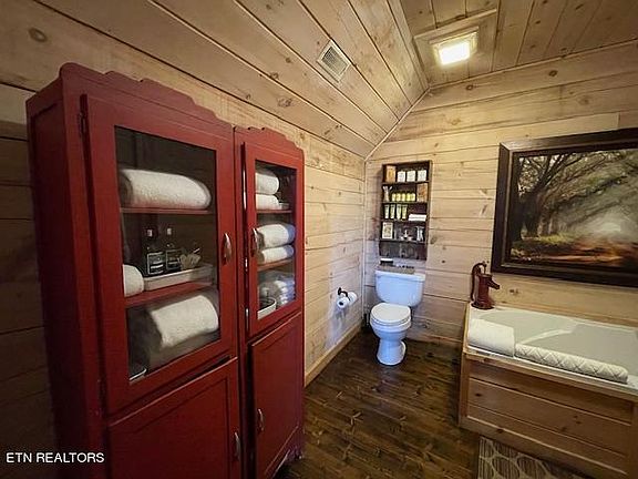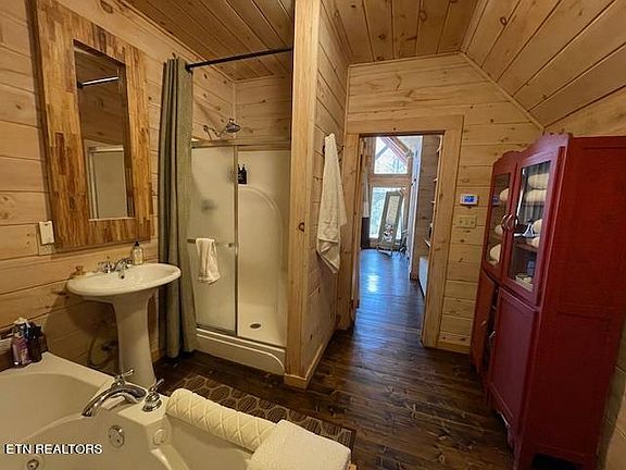 2 story log home on a mostly level lot with a seasonal mountain view. Large front and rear covered decks. Large bedroom with full bath that has a whirlpool tub upstairs with a fireplace. Custom kitchen. Hardwood floors. Sleeper sofa. Much more. The seller has not used as an overnight rental but it may make a very good STR. All measurements and information was obtained from the county tax records and the buyer should verify all information.
