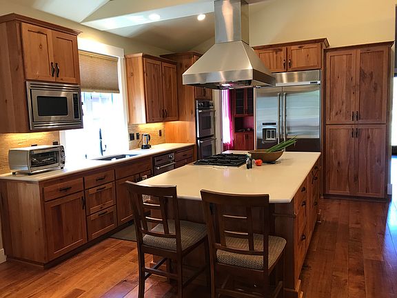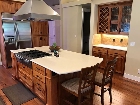 Highly sought-after single level Sandstrom built home in Bailey Ridge, near Illahe golf course. Completely upgraded kitchen w/solid quart counters, stone backsplash. Prof grade Jenn-Air (6 burner cook top, double ovens, and built-in fridge), new island w/seating & storage both sides, mixer lift shelf, custom spice stg & soft close drawers.Vaulted ceilings, knotty cherry wood cabinets/floors, central vac, tankless H2O, & 3 gas fireplaces