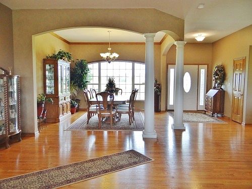 Complete info: http://38702midiestatesdrive.AgentMarketing.com - Gorgeous home on 5.1 acres in Beautiful Midi Estates. Enjoy luxury living and some seclusion as this home is tucked away from the main road into the subdivision. Seller thought of all the details such as solid red oak trim and doors, ton of Cherry wood cabinets in kitchen including large island, upgraded appliances and refrigerator. This open area includes the hearth room featuring propane gas fireplace with recirculator, sunny breakfast room and surround sound. You will appreciate the spacious great room and formal dining area,all wood floors but very open with tons of natural light. As you travel down the hallway you will find 4 very large bedrooms with walk in closets and a main floor laundry room with a built in iron board and storage space to tuck away laundry baskets and such. The master suite is quite large and features a luxury bath with walk in tile shower offering dual heads, dual vanity and offers tons of space in the walk in closet. Separate water closet and all custom cherry cabinetry make this room a retreat. The subdivision offers an 8 acre lake for the residents to enjoy, private roads and wonderful green space and walking areas.