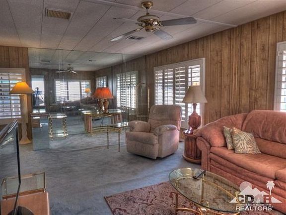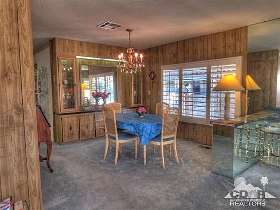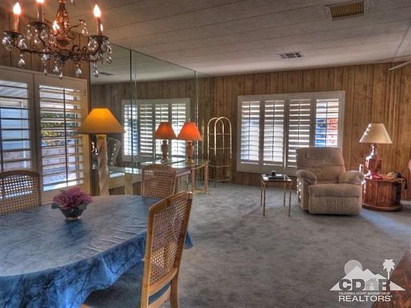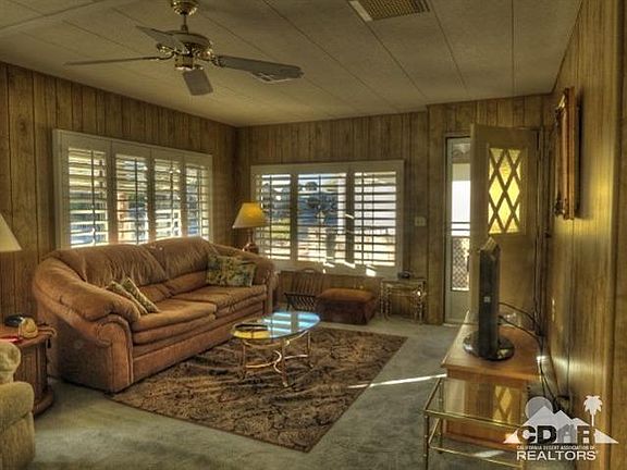 This lovely west facing home on a prized street has an attractive desert landscape and a spectacular mountain view from the living and dining rooms. The family room is open to the bright circular kitchen and has a cute bar. Windows have plantation shutters throughout. The air conditioner is nearly new. Comes turn key furnished per inventory. Take a look, it won't last long at this price!