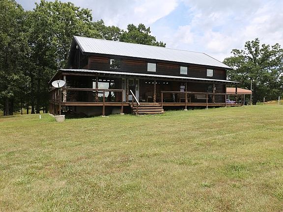 For sale in the beautiful Ozark Mountains in south central Missouri: Striking Log-Sided Home with Gorgeous Views in every direction. The Spacious Home with Open Floor Plan and Open Beam Construction sits on 11 acres and boasts Covered Porches on three sides plus a Magnificent Wall of Windows, and Overlooks a 2 ½ Acre Lake. This Lodge-Like Dwelling features Knotty Pine Walls, Tin Ceilings, and Hardwood and Tile Floors. An amazing Open Staircase leads up to the Vast Loft where you will find the Master Suite complete with Walk-In Closet, tiled Master Bath, and Sitting Area with Spectacular Views to the living area below and the rolling fields outside the Wall of Windows. For your cooking and dining pleasure this home includes a Marvelous Kitchen with Custom Pine & Tin Cabinets, a JennAire Cook top, Breakfast Bar/Island, and a Separate Formal Dining Room. All of this is within minutes of schools, shopping, restaurants, libraries, museums, and hospitals in West Plains, Missouri. A short drive will take you to lakes, rivers, and Mark Twain National Forest and Branson, Missouri entertainment is about 1-1/2 hours away.