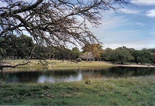 High fenced on 2 sides, year around creek-good creek- Lots of postoaks. Small hunting cabin. Lake is approx. 1.5 to 2 acres.