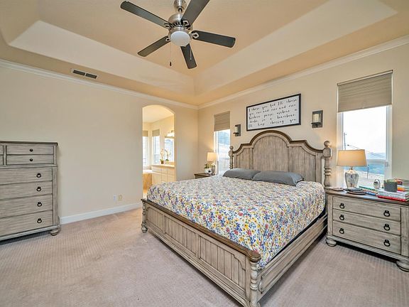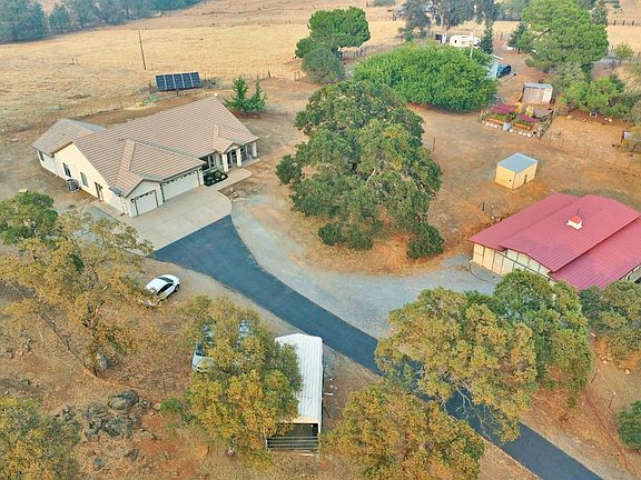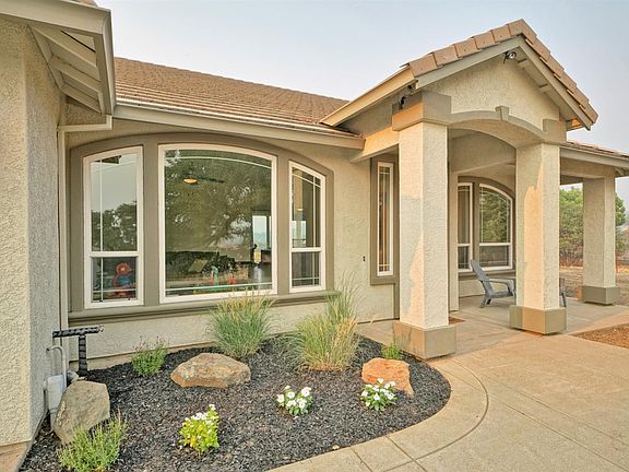 Gated single story w/views of the Coloma Valley. The bright open floorplan welcomes you in w/an abundance of windows. The dining room has lovely coffered ceilings, large living room to the front of house leads you in to the Gourmet kitchen w/ Kitchen Aid appliances, granite counters & Huge island offering an abundance of counterspace and cabinets. Nice sized family room with a shared fireplace is a nice place for catching up. Owned SOLAR, HVAC & ducting is just 2 years old & offers dual zone heating/cooling for your comfort +Smart thermostat. The Wide-open hallway leads you to the double doors opening to the lg Master suite offering a slider to outside. Master bathroom-Double sinks, separate tub, tiled shower with glass door, water closet and a large walk in closet. Other 3 bedrooms are great sized for family or office. HORSE property: fenced and cross fenced 5 acres with a large BARN. When seller purchased there were 7 stalls, now set up as workshop and storage.