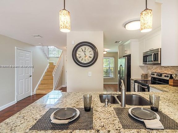 Spacious 2-story town home in west Sunrise near Sawgrass Mills area and Sawgrass Expressway (Colony Courts II) features 3 bedrooms (all on 2nd floor), 2½ updated bathrooms, updated kitchen overlooking the great room with stainless steel appliances, granite counter with breakfast bar, washer/dryer, and breakfast nook area. Additional features include tile flooring on the first floor, laminate wood flooring on the stairs and second floor, fenced patio area with pavers, and additional storage room. Credit and Background Check and Association approval required with a minimum credit score of 650 and Income 2x the rent. One small pet allowed under 20lbs with additional deposit. First, last and security and Renter's Insurance required. NEW Luxury Vinyl Plank FLOORING to be installed.