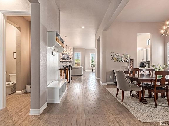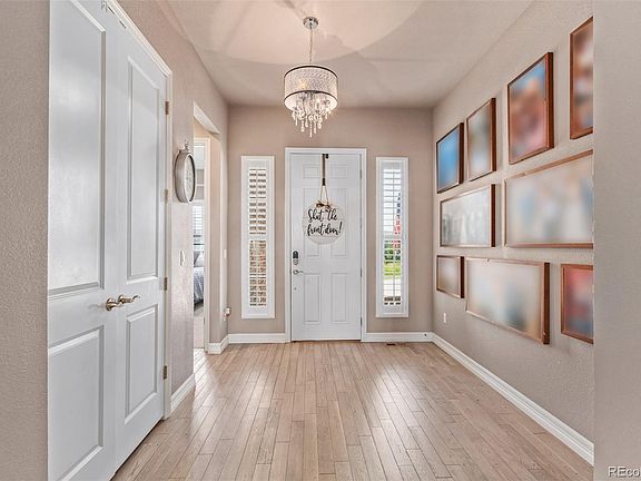 Welcome to Castle Oaks Estates, where serenity and luxury blend seamlessly. This remarkable ranch-style home with 2 bedrooms upstairs and 2 in the basement, nestled in the picturesque rolling hills of Castle Rock, offers breathtaking beauty at every turn. With four spacious bedrooms and an additional office or non-conforming bedroom, there is ample space for you and your guests to relax and unwind. Upon entering, you'll be captivated by the grandeur of the 12.5-foot ceilings that adorn the entire home. Sunlight pours in through abundant windows, creating a bright and inviting atmosphere throughout. The hardwood floors exude warmth and sophistication, seamlessly connecting the living spaces. The open floor plan allows for easy entertaining and gatherings, especially in the formal dining room. The heart of this home lies within its modern kitchen, featuring sleek granite countertops, a gas stove, stainless steel appliances, ample storage space, and a large walk-in pantry. The primary suite offers a tranquil escape with a lavish en-suite bathroom adorned with luxurious fixtures and finishes. The custom walk-in closet provides ample storage. In addition to the main living areas, the basement was newly finished in 2020, offering endless possibilities for recreation, entertainment, or a home office. With two bedrooms and another non-conforming room, it can be tailored to suit your unique needs and preferences. Located in the desirable community of Castle Oaks Estates, this home provides access to a wealth of amenities, including a clubhouse and pool. Castle Rock's shopping, dining, parks, and recreation are just a stone's throw away. With easy proximity to I-25, commuting is a breeze. Indulge in a lifestyle of quaint luxury and comfort with this remarkable Castle Oaks Estate home.