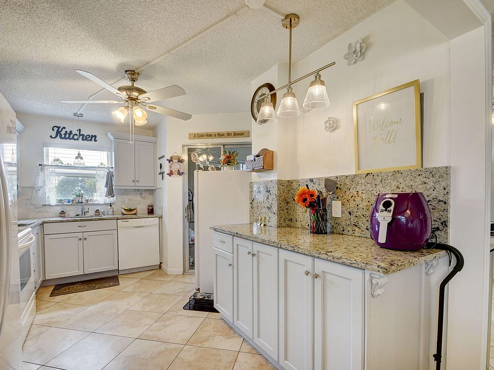 A completely renovated 2 bedroom 2 bath is waiting for you. Corner unit, impact windows, accordion shutters on the 25' patio overlooking the active golf course, diagonal tile floors throughout, open concept kitchen with light gray cabinets and granite counter tops. Walk in shower beautifully tiled, and lovely vanities. New Tankless HW Heater. electrical panel, front load W/D, closet doors, lighting. Must see to appreciate and be so proud to call this home. Poinciana is an active 55+ community with many amenities. For starters there is a clubhouse with a restaurant that has entertainment most nights, gym, sauna, social clubs, movies, shows (in season), tennis, and of course the amazing golf course. Lake Worth Beach is 8 miles away as well as shopping, PBI Airport.