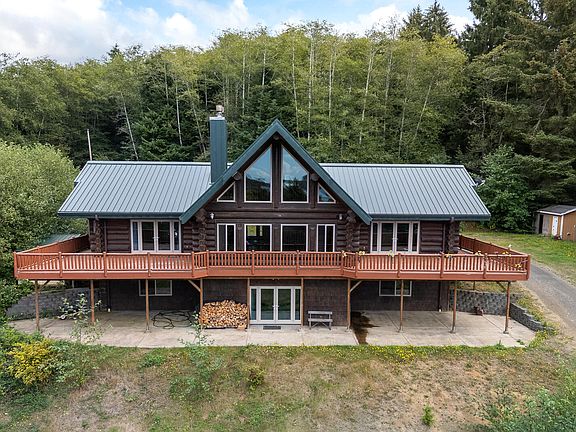 This one of a kind exquisite LOG HOME boasts 3,962 sqft 3 bedrooms 2.5 bathrooms, radiant heated floors, forced heat and wood stove to keep you warm and cozy, shop w/ 2 inside RV parking spots 2.02 acres of pure tranquility, privacy and your own space. Full open floor plan. MAIN FLOOR LIVING, 1,113 sqft wood deck surround, metal roof and top of the line insulated windows and doors throughout. Built in 2010 and is in great condition. MOVE IN READY. This home had a pre-listing certified home home inspection. ask your agent.