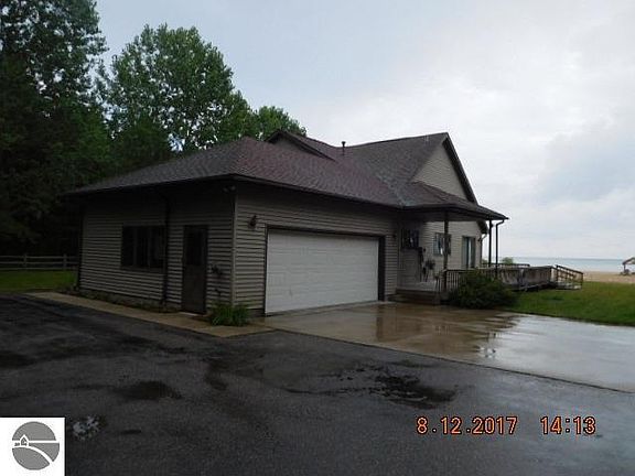 Gorgeous sandy beach with 144' of frontage and fantastic Southern exposure for that all day sun! Bring your jet ski's and enjoy the day's at the beach, the Tiki Hut and evenings by the campfire! Plenty of decking for outside entertaining and grilling out! This lovely home was built in 1991 and offers a great floor plan. The living room offers a beautiful stone fireplace, has cathedral ceilings and is open to the dining area. The kitchen includes all appliances, has plenty of cabinets and the Lake Huron views can be enjoyed from all the main living areas. The master suite is on the main level and lakeside, large walk-in closet and huge master bath! There is also a large utility room on the main level, a 3/4 bath and spacious foyer. Upstairs you will find two bedrooms, one of which duals as a loft and a full bath. Garage space is great with a 2.5 car attached, plus a 24x32 detached for a workshop or to store your boat & beach toys! Truly a great area with the best of beaches on the Sunrise Side! **Disclaimer, dining room light will not be staying, seller will be removing.