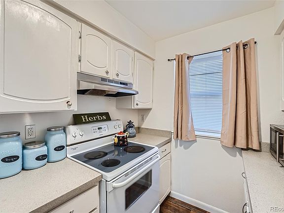Welcome to this recently updated, one-bedroom condo located in the highly sought-after Cherry Creek School District. With its own private entrance, this garden-level unit offers a fresh and inviting atmosphere with new Luxury Vinyl Plank flooring and paint throughout. Boasting a spacious living area, you'll find plenty of room to relax and entertain around the cozy wood-burning fireplace. The open layout allows for seamless flow, accommodating a small dining table for intimate meals. The kitchen comes fully equipped with all appliances, including a new refrigerator, making meal preparation a breeze. Additionally, the convenience of an in-unit washer and dryer eliminates the hassle of trips to the laundromat. Step outside onto the covered patio, accessible from both the living room and bedroom, and enjoy your own private outdoor oasis. Alternatively, take advantage of the community pool during the warmer months for a refreshing swim. This unit offers ample off-street parking in the private parking lot, ensuring convenience and ease for residents and guests alike. With a total of 709 square feet, this charming condo provides the perfect opportunity to stop renting and start owning your own piece of real estate. Don't miss out on this fantastic opportunity to call this condo your own. Contact us today to schedule a showing and make this property yours.