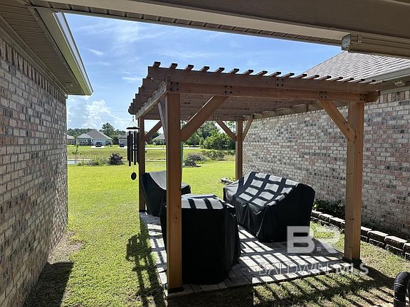 Beautiful Signature Series home by Truland. Gold fortified home with back yard water feature. This 4 bedroom 3 bath home offers quality construction and many extra amenities including quartz countertops, hardwood flooring, gas fireplace, custom window treatments throughout, brick exterior, smart home technology, 12 ft ceilings, crown moulding, sold core interior doors, stainless steel appliances, double vanity master with separate tub and large walk-in shower. Covered rear patio with additional paver patio with pergola perfect for lazy afternoons looking out over the water. Huge backyard with in ground fire pit and lots of room to add a pool or just plenty of play space for pets and kids. Full in ground irrigation system and custom built stone flower beds full of beautiful flowers. Home is close to all Gulf Shores and Foley shopping destination and is only 4.5 miles from the beach. Neighborhood has play grounds and community pool. Buyer to verify all information during due diligence.
