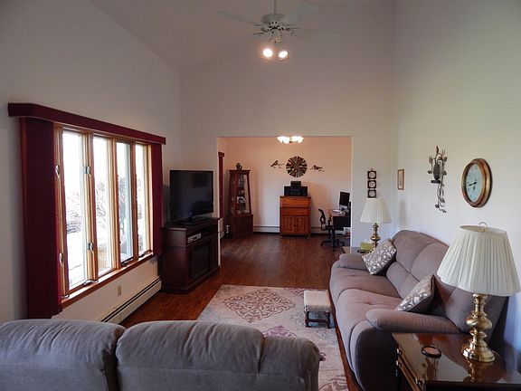 Lovely 1,590 square foot ranch situated on a private park-like yard boasting almost 9 acres! Home features 3 beds, 3 full baths, and a large updated kitchen with newer floors, counter tops, and acrylic drop sink. Living and dining room brand new vinyl plank flooring. Additional exterior features include pole-barn, pond, pool, large deck with awning, and a newer roof!