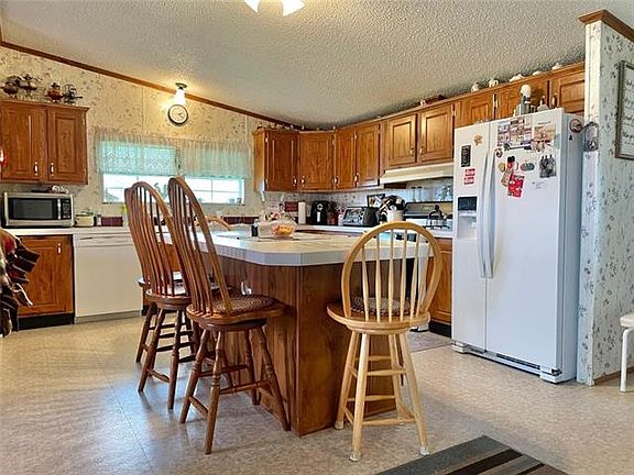 Here’s your chance to move to the country! This acreage offers a 2200+ square foot manufactured home on 3 acres +/- just minutes from a small rural community. Lots of space with a living room, eat in kitchen, dining room, family room, master bedroom and bathroom, two additional bedrooms and a full bathroom. Conveniently located off of the kitchen is the laundry room, a half bathroom, and just down a couple of steps is a large enclosed all season back porch. Outside offers a storm shelter, 2 car carport, and an outbuilding with plenty of room for a mower, camper, and all the toys. Amazing views and situated on a blacktop road are just a bonus.