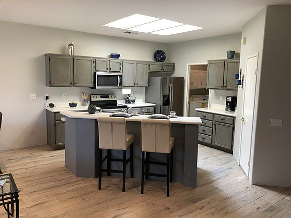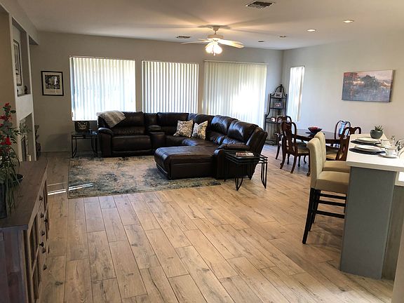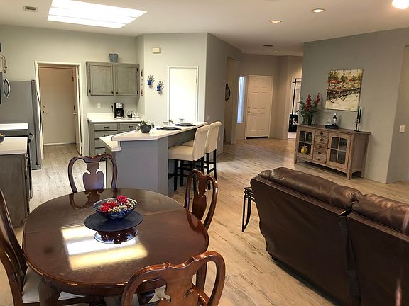 This St. Maarten Plan in Sun City Palm Desert has two Bedrooms and a Den/Office. The Kitchen with island and pantry, opens up to a spacious Great Room with a fireplace, and there's also a skylight that allows natural light to cascade into the living area. The Master Bedroom is voluminous with a lovely bay window, and the Guest Bedroom is serviced by a full Bathroom. New ceramic plank flooring underfoot throughout the home, and don't forget the Laundry Room off the Kitchen. There's a covered patio off the rear of the home making it a great spot to have a cocktail. Furnishings available outside of escrow.
