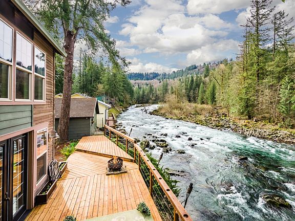 Stunning Washougal Riverfront location~enjoy the soothing sounds of the river year round~large deck built for entertaining with some access to river~contemporary home built in 2008~ light bamboo floors on the main & dark bamboo floors upstairs ~ open great room~ dual sided fireplace offers viewing from inside house and the yard~ 2 main floor bedrooms(1 has no closet)~ spacious kitchen with large butcher block island & raised bar seating~ stainless appliances~ 2nd floor vaulted master suite & loft sitting area~ spectacular master bath~ w/i closet~VIEWS from almost EVERY window~ detached 2 car garage with loft storage