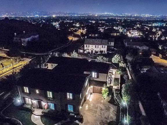 $386 sq ft, located in Yorba Linda's most prestigious and desirable neighborhood-Kerrigan Ranch. BACK ON THE MARKET. This home is AMAZING, and move-in ready! Like a priceless Rembrandt, your new home is painted against a backdrop of rolling hills and enjoys panoramic lighted views across Orange County, to the glossy shimmer of the Pacific, and Catalina. This 6 bedroom, 5½ bath estate exudes luxury throughout. The private half acre lot has only 1 single story neighbor, offering the utmost in privacy. One bed and bath is located on the main level, along with an office, formal living and dining rooms, a music room or den, and the most amazing gourmet kitchen that lives up to "Master Chef" standards. Take note of stunning custom crown and double crown molding. Upstairs, the master suite enjoys unobstructed views, dual huge walk-in closets, and a redesigned master bath that would rival a spa at any 5 star resort. Discover the bonus room, up the stairs, off the kitchen that currently accommodates a theater and game room. This home is perfect for entertaining. The breathtaking backyard is unbelievable. Salt water pool, spa, dual gazebos; one complete with TV, fan, and fireplace, creating romantic ambiance. The outdoor kitchen even has its own wine refrigerator! Don't miss the new insulated garage doors complete with WiFi app, electric gated driveway entry, video camera surveillance retrievable on you phone, Skyport doorbell, & paid solar panels (electric bills of under $600 per yr).