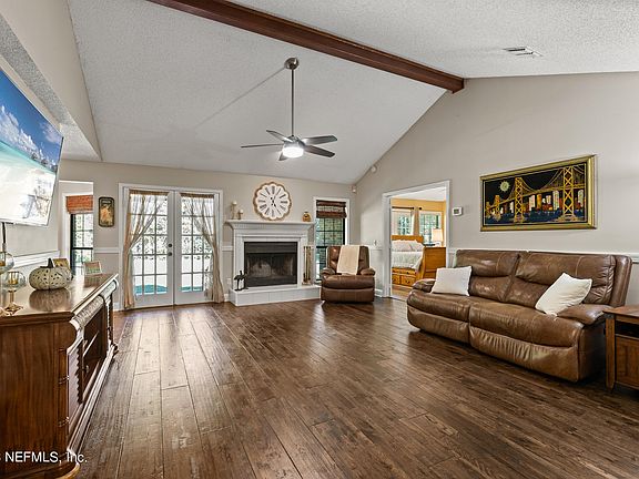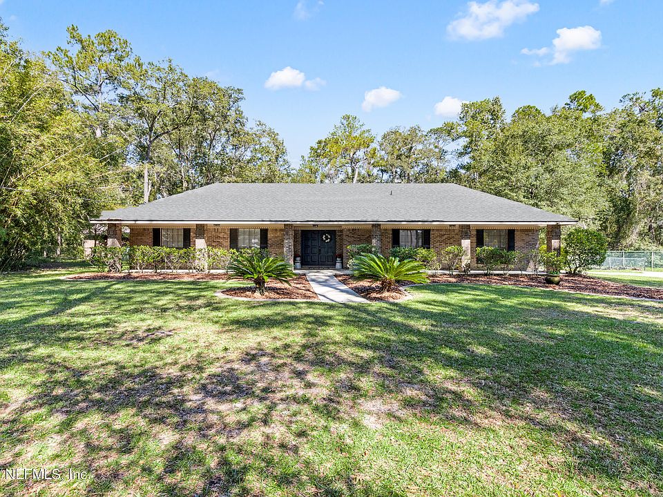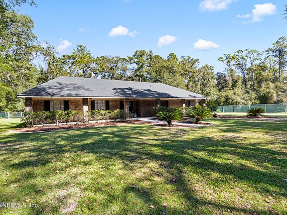 Charming 3/2 with flex space on .92 acres in the heart of Old Mandarin. Warm & inviting all brick home offers hand-scraped hardwood flooring & an open living room w/vaulted ceiling, fireplace & double french doors. Kitchen upgrades include 42'' glazed cabinets w/ decorative crown molding, SS appliances, granite countertops & elegant tile backsplash. Natural lighting floods in from the bay window in the dining area. Ideal for birdwatching during breakfast. Retreat to your ensuite complete w/custom barn door, furniture style cabinets, granite countertops, walk-in shower & soaking tub. Custom French Doors open to a flex space that can be customized to your needs- 4th bedroom, playroom,yoga room- your imagination is the limit. Additional detached garage for storing your toys. No HOA or CDD. Offering a perfect balance of tranquility and accessibility. Enjoy sweet tea and front porch sitting or entertaining on the back deck. Loretto Elementary is just across the street and you will be delighted to discover that shopping, restaurants and recreation are nearby.