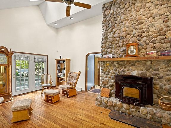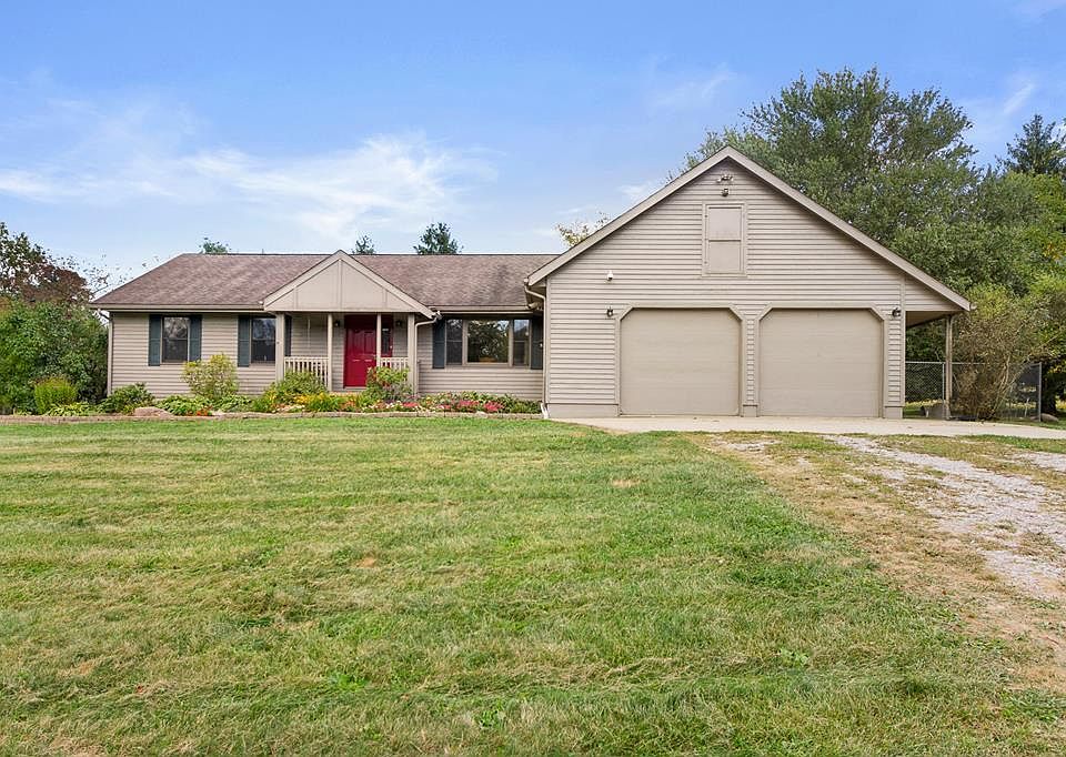 Well-maintained country ranch on 21.9 acres with pond & woods. Family room: fireplace & cathedral ceiling. Beautiful cherry kitchen with stainless appliances & pantry, large eat-in area, hardwood floors & built-ins. Ownerâs suite, bath, large closets. Lower level: 2 rec rooms, built-ins, huge bedroom & full bath. Fenced pasture, Grape Arbor, strawberries, raspberries, blueberries, rhubarb. Geothermal heat, five years old. Barn & house freshly painted, home is set up for generator. Stocked pond. 28x40 pole barn, loft, workshop, concrete floor, electric, & possible office. 24x33 garage: 2 car attached, detached 2 car. 2 wood decks, 1st floor laundry, security system.