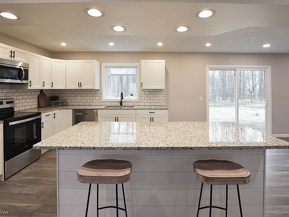 If you're looking for a private secluded setting, this renovated split level on 2+ acres is one you'll want to see! The covered front porch provides an inviting entry to the open concept kitchen with space for dining, counter seating at the center island, beautiful granite countertops and stainless steel appliances. Stay connected with friends and family in the adjoined living room or gather in the lower level family room complete with a wood burning fireplace and patio door access to the tree lined yard. A laundry room and full bath complete the lower level. Upstairs you'll find 3 nice sized bedrooms with new carpet and a modern full bath with a tub, shower and solid surface vanity. Outside, enjoy stunning country views and a peaceful setting tucked back from the road with a freshly graveled drive that leads to the 2 car side load garage. Some of the many improvements include a new lower roof, furnace, A/C, water softener and some windows. Don't miss this rare find, call to see it tod
