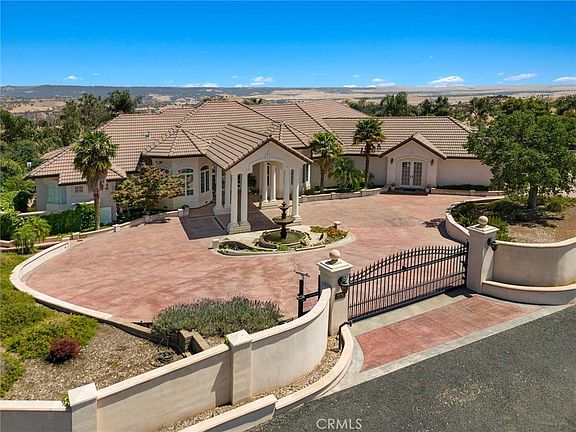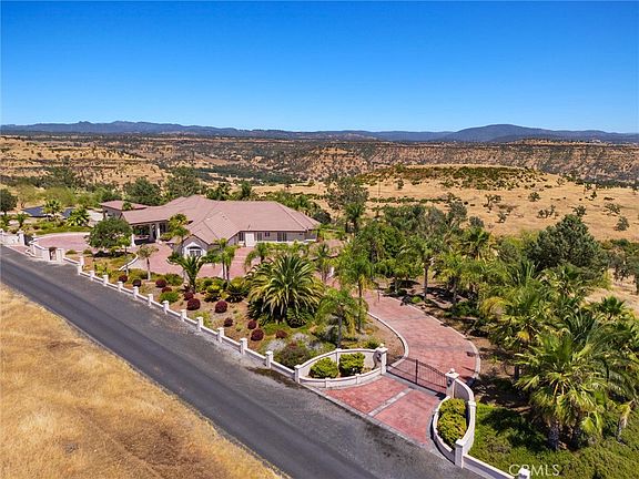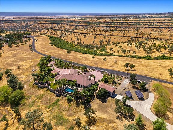 Welcome to your dream oasis! This one owner home, nestled on 40 sprawling acres with breathtaking views of Butte Valley, this stunning Mediterranean-style estate embodies luxury and elegance. Designed by Sater Luxury Homes, this gated 3-bedroom + Den, 3.5 bath residence spans 3,378 square feet. As you enter, be captivated by the grandeur of tall ceilings soaring up to 12 feet with crown molding throughout. The custom windows allow for natural light and invites the outdoors in. 18-inch tumbled travertine tile flooring add to the home's sophisticated charm. The expansive living spaces are adorned with solid core doors, plantation shutters and custom drapery. The cozy gas fireplace in the living room creates a warm ambiance perfect for gatherings. The primary bedroom is a serene retreat with gorgeous views of the pool and valley, featuring dual his-and-hers closets and a luxurious en-suite bathroom with dual sinks. Each of the two guest bedrooms boasts its own private en-suite bathrooms, ensuring ultimate privacy and convenience. The gourmet kitchen is a chef's delights, equipped with top-of-the-line appliances, double ovens, prep sink in the island, built in wine refrigerator, with large eating bar open to the family room. Step outside to the outdoor kitchen, where you can entertain guests in style while enjoying the panoramic views. The stunning infinity pool and spa provide a perfect vantage point to take in the scenic beauty of Butte Valley. The exterior of the home is equally impressive, featuring a tile roof, koi pond, fire pit, and beautiful landscaping with palm trees and outdoor lighting. Built with 2x6 construction and complemented by 44 owned separate structure solar panels, this home is both sturdy and energy-efficient. The property includes a separate 2,000 square foot shop with garage doors, ideal for all your storage and hobby needs. Additional amenities include a carport, colored stamped concrete, balustrades, fire sprinklers, custom RV carport, and an outdoor lighting system that illuminates the exquisite landscaping. This estate is a true masterpiece, offering unparalleled luxury and tranquility. Don't miss the opportunity to own this exceptional property and enjoy the ultimate in refined living.