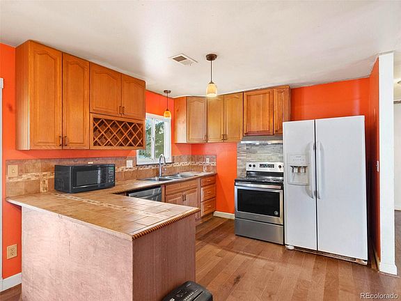 Located one block from Mission Viejo Park, a fantastic opportunity lies in wait. Need 5-6 Bedrooms? You have arrived....this home gives you the upside of making improvements yourself and getting all the reward. Currently, a three-bed, two-bath home with a full, partially finished basement in the sought-after Cherry Creek School District. Lower level offers additional bedrooms and a bathroom which are drywalled but in need of flooring. Enjoy currently present Hardwood floors, central AC, Solar Panels, and an oversized two-car garage. This home is prime with equity opportunity. This Kitchen is TURN-KEY ready for holiday meals and has solid hardwood cabinetry and five burner gas stove. Just off the kitchen is the Living room with wood burning fireplace and 4'' wood floors. The main level features the primary bedroom with ensuite and two additional guest bedrooms, and a shared bath. The lower level is where the opportunity lies for the next owner. You enter the LARGE lower level with tiled family room, 3 additional drywalled rooms ready for flooring and finishing touches to create any function needed. Adjacent is a laundry room, complete with a roughed in bathroom. With a little TLC, the opportunity is limitless. *Documents are in Supplements regarding taking over the Solar Lease, approximately $200/Month. ** Please look at MLS # 9257042 for inspiration on floor plan possibilities.