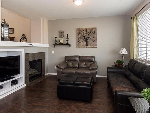 Naturally light and bright 2-story home. Eat-in kitchen features 42 Knotty Alder cabinets, tile granite countertops, granite composite sink and sizeable pantry closet. Pass through gas log fireplace located in living room and family room with wall opening providing large display shelf and built-in storage for entertainment equipment. Upper level features loft overlooking living room with built-in bookshelves, 2 secondary bedrooms with shared bath and master bedroom with private bath and walk-in closet. Storage available in the extended garage and storage closet. Home includes CAT 5 wiring, triple pane windows, concrete tile roof and new paint in nearly every room. Exterior features covered front porch and fenced backyard with deck and open space views. Don't miss out on your chance to live in this great community!