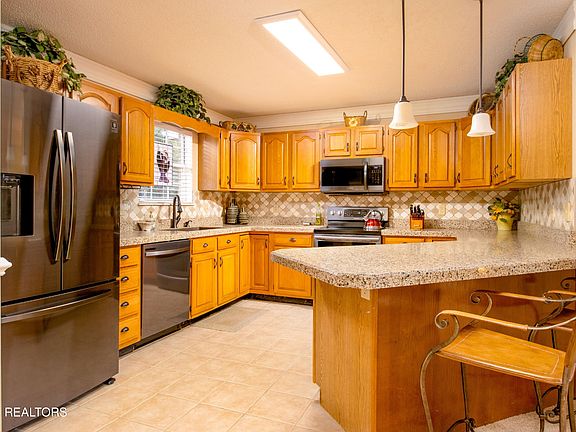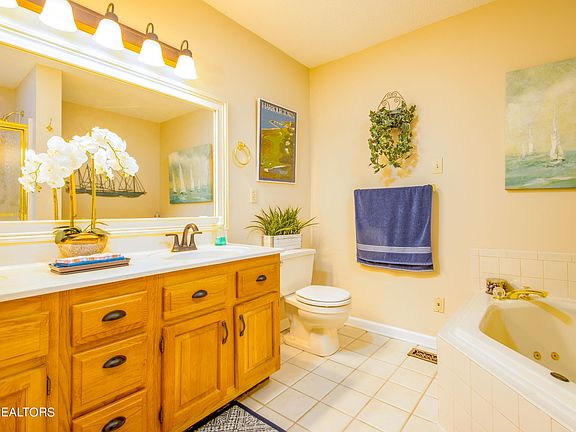ZERO steps to enter from either the front porch or the garage, all brick, primary suite and laundry room on main level, 2 fireplaces, and 2 huge living spaces... plus a dining room AND storage galore!! The family room is massive (approx. 31' x 13') with enough space for TV and entertaining PLUS plenty of room for a 2nd sitting area to cozy up in front of the fireplace. Vaulted ceilings create an even bigger feel in the living and dining room. Since it is open to the kitchen and the dining room, this would be the perfect home for hosting the kids and grandkids for the holidays. The kitchen has all the features we love! Granite countertops, tile floor, arabesque backsplash, a window over the deep, double basin sink, and sleek, updated appliances including a double oven for those who love to cook or bake. The laundry room is adjacent to the primary suite on the main level. The bedroom has plenty of space for king size furniture with its own door to the private, back deck. You will not run out of room in the oversized walk in closet. The ensuite bath has a walk-in shower with a bench seat plus a jacuzzi tub, dual sinks, and tile floor. Downstairs is a second living room (approxim. 13' x 31') with a second fireplace and its own private back porch. There are 2 additional bedrooms plus a large full bathroom downstairs. What a perfect home away from home for family or friends who come to visit! You can enjoy all that together time, but still have your own space and privacy, too. You can't beat this location! SuperWalmart is exactly 1 mile away and Kroger and Publix are about a mile and half the other direction right beside Foothills Mall. You have so many shops and restaurants to choose from that are all just a few miles away. The HOA dues are around $190/mo and you can find all the information relating to Royal Oaks and Golf Villas HOA at royaloaksmaryville.com. Call your favorite realtor to schedule a showing!