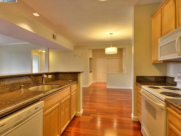 Luxurious condo living in the Pavilions. Wait till you see the beautiful Brazilian Cherrywood floors, upgraded kitchen with granite counters, private patio with views of the hills. All this and an easy walk to BART, shopping and central park, enclosed gar. Open 11/23 from 1-4 pm.