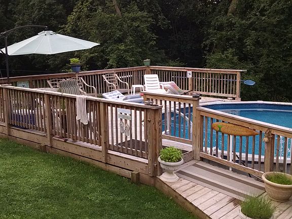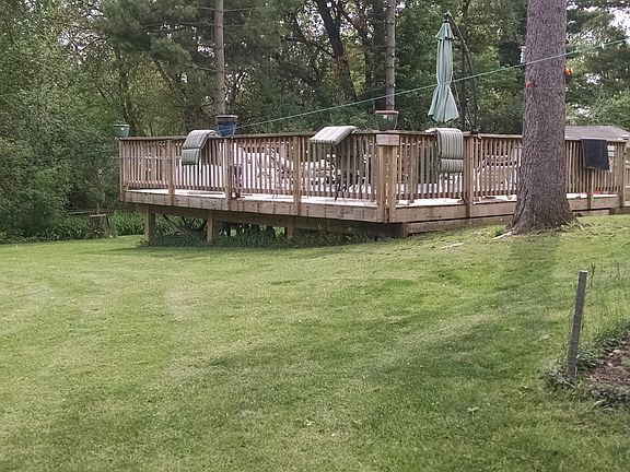 Charming ranch home near Dunns Lake and the Chain O' Lakes. This home features 3 bedrooms, 1 bath and a full basement. 1 1/2 car detached garage. Great home for summertime entertaining with decks on the front and back of home and an above ground pool. Pool is only 4 years old and has a 10 year warranty. This would make an ideal home for someone starting out, slowing down or just looking for a weekend getaway. Located on a quiet dead end street with lots of privacy. Wooded lot with mature trees. Short walk to neighborhood beach. Sellers have never had water in their basement. Take a look today.