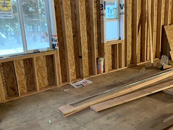 Bring your tools and finish off this home just how you want it. This home features 13/16'' real plywood tongue and groove subfloor, fox block foundation, 5/8'' decking on roof, 35 year architecture shingles and some supplies to get you started. Floor plan is for a 3 bed 2 bath home and garage but you could move walls where you want them. Great location, close to lakes, rivers, atv riding and town.
