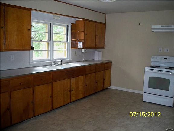 2 bedroom 1 bath home w/full dry basement & attached 1 car garage on a 1/2 acre lot just outside the village limits. Hardwood floors, large living room, eat in kitchen & jetted tub in the bathroom. Woodstove in the basement. Newer windows, hot water heater & roof is only 5 years old. Woodstove & walk in cooler in the basement. Walking distance to Carthage Hospital & the park, only 15 minutes to Fort Drum!