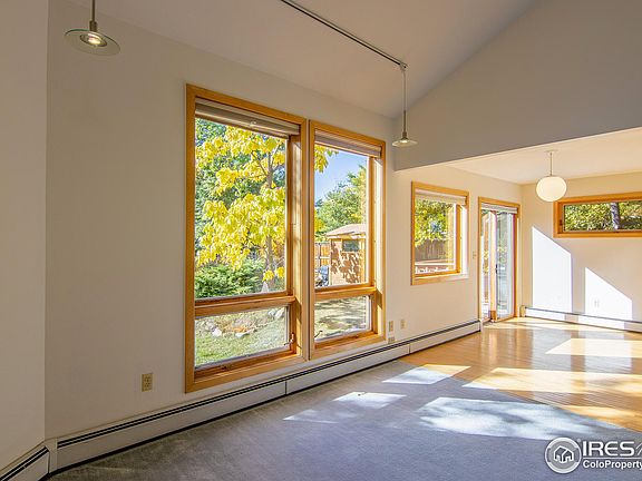 Come home to this sun drenched North Boulder 3 bed, 2 bath house on a quiet cul-de-sac around the corner from Lucky's Market. The vaulted ceilings and Pella windows create a sunny open main level that flows easily to the large private tree filled backyard. Enjoy the large upstairs bedrooms with clerestory windows, and South facing exposure. Stay warm with passive solar, 4 zone hot water heat, and the Jotul wood stove in the family room. The lower level has extra live/work areas for children or guests to enjoy. A short stroll through the mature tree filled neighborhood takes you to cafes, restaurants, groceries, liquor store, bus line and a glorious walk to Wonderland Lake. Elementary and Middle schools are also close by. The property is surrounded by much higher priced homes. Take this opportunity to make this lovely home yours.