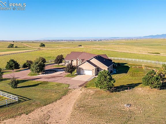 BACK ON THE MARKET!! Contingency Fell Through! This exquisite 37.19 Acre private Ranch home presents a lifestyle of comfort and convenience with a stunning view of Pikes Peak, secluded in the Hammer Ranch neighborhood with 4 bedrooms and 4 baths. A cozy fireplace, partial unfinished basement, a circular driveway with 4 Car attached garage. A newer 4'ft Everguard Tan Vinyl Fencing, 1,000gal Propane Tank, Stable with 2 horse stalls, a shared heated water pedalstal, a round pen and a dual Air Conditioners outside of Barn. A Nursery/Greenhouse (nursery equipment is negotiable but Sellers will remove equipment if Buyer is not interested). New Radon System has been installed. Septic Tank is scheduled to be repaired before Closing. Bring your Buyers again for a second look! Home Need A Minor Repair, Carpet and Paint.
