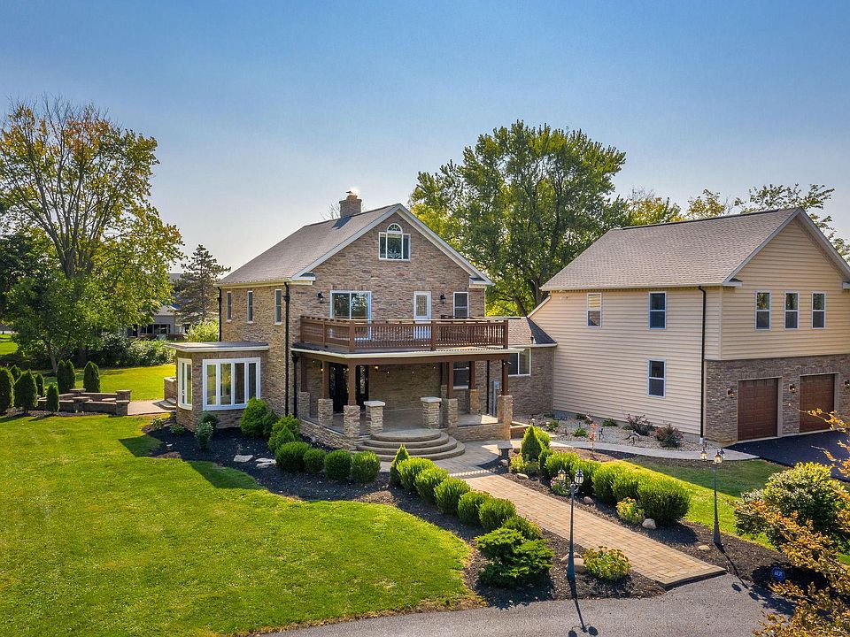 Looking for country living near the city? Located on 1.5+ acres this unique home started as a turn of the century farmhouse and has been completely updated within the last 8 years with high-end, custom finishes to accommodate your family's needs. Two owner's suites-one on the first floor with it's own private patio and fire pit. The second owner's suite is accessed by a private stairway off the oversized garage, has a vaulted ceiling & spa-like bathroom. Kitchen offers a 6 burner gas range, granite counters, marble floors and tile backsplash. The entire home is tile, marble or wood flooring. Beautiful carpentry throughout (crown molding, wainscoting, wide baseboards & trim). This home provides expansive entertaining areas inside & out as well as cozy nooks.