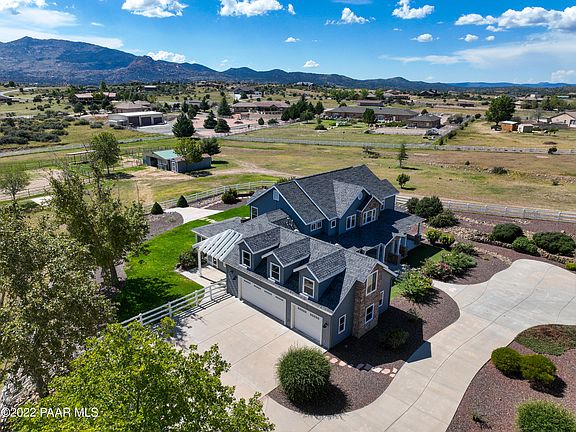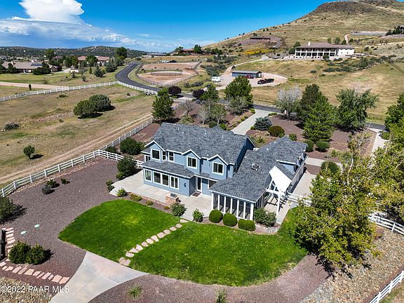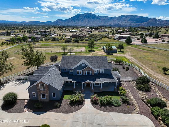 Stunning remodeled 3781 sq. ft. Equestrian Estate in Williamson Valley Ranch. (See upgrades in the documents tab). Strategically placed on 6.36 lush green acres surrounded by mature trees, beautiful landscape, with panoramic views of Granite Mountain. The home offers 4 bedrooms, office, 3 Bath & 3 car garage. Friends and family can enjoy the ranch with their own private access to the Guest or In-Law Suite equipped with a full kitchen, 1 bedroom and 3/4 Bath. The ranch offers the equestrian a 4-stall barn, tack room, shed, wash rack, hitching post, 100x200 arena and green pasture turnout plus multiple paddocks and cross fencing. A grand entrance brings you through a circular dive. Inside, is an open radiant sun filled floor plan that is immaculate and move in ready.