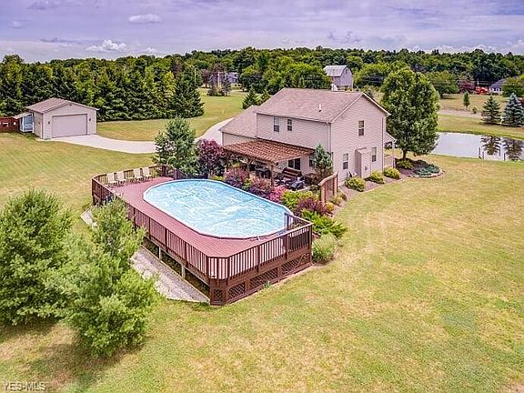 Outdoor lovers PARADISE! This move in ready colonial sits on over 4+ acres of tranquility! The land features a fully stocked over sized pond with bass and bluegill, a newly built 24 x 32 pole barn, a full chicken coop, a garden that will have you falling in LOVE, and berry trees that line the back of the property! If you love to entertain, the back brick and stone patio with pergola is perfect to relax and enjoy the peacefulness! A 40 x 20 above ground pool and large deck compliment the back entertaining area. As you walk into the front foyer, you are greeted by the family room with a cozy gas fireplace, and surround sound audio! A main floor office / den and half bath are before the open kitchen concept. Featuring island seating, updated cabinets and plenty of storage in the eat in kitchen! The second level features second floor laundry, two great sized rooms, a full bath, and a large master bedroom with on suite full bath and walk in closet! The lower level is partially finished and is a great playroom / rec area! Don't miss out on this one of a kind HOME located in Keystone school district!