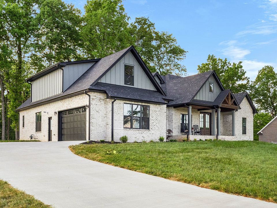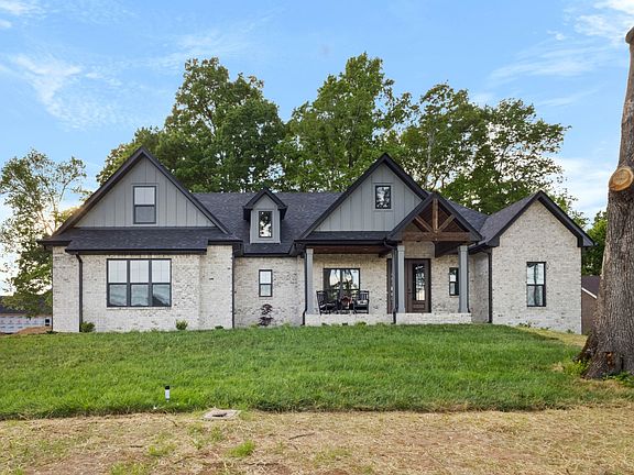 Nestled in the trees, this new construction plan is jaw-dropping! The exterior is mostly brick with board and batten accents. The floor plan is open, modern designed ranch with a large living area, fireplace, dining area, not to mention the breakfast nook and kitchen! The sleeping quarters are split with a large primary suite on one side! The other two bedrooms host their own bathroom! The bonus room upstairs is huge with approximately 691 sq ft with a half bath! You can enjoy the wildlife outdoors with both a covered front porch and a covered back porch. This home is located in the growing Cunningham area that is approximately 6 miles from the city limits of Clarksville TN. Better hurry, this one is a dream home!