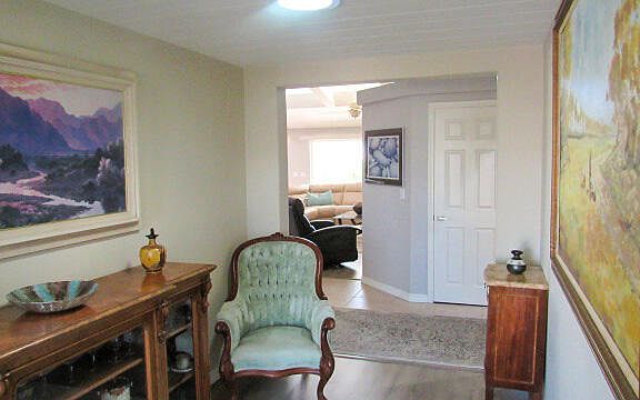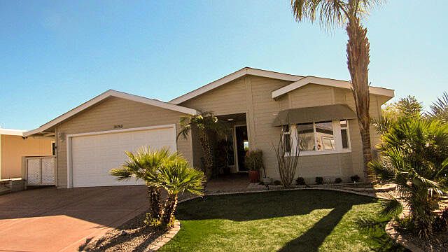 Custom designed 2004 home with Open Floor Plan, Garage, and Mountain views! The construction is 2 x 6 in the exterior walls and the interior has rounded corners on the drywall. The outside of the house was painted 1 year ago, and the AC is new! A Special Feature is the added entryway leading into the home adding 100sq, ft. with 2 solar tubes. New flooring has been added to the living area to match the entryway. Upon entering the great room, the new large picture window lights up the whole living space and looks out onto the spacious patio. The kitchen Island is an eating bar great for entertaining and a prep station with the sink and dishwasher built in. The kitchen is designed with granite counter tops, repainted solid oak cabinets with slide outs and stainless-steel appliances. A large pantry is just off the entry to the double garage and washer and dryer. The Granite eating bar/island opens to the living and dining area. Sky Lights accent the Great Room with laminated flooring and access to the large private covered patio with mountain views. The Foyer to the right leads to the den and 2 split bedroom floor plan. The large master bedroom suite leads out to the back patio. The den is just off the foyer and the guest room and bath are at the front of the home. The bathrooms have granite counter tops and repainted oak cabinets. All the work has been done and this home is ready to move into and enjoy Desert Living.